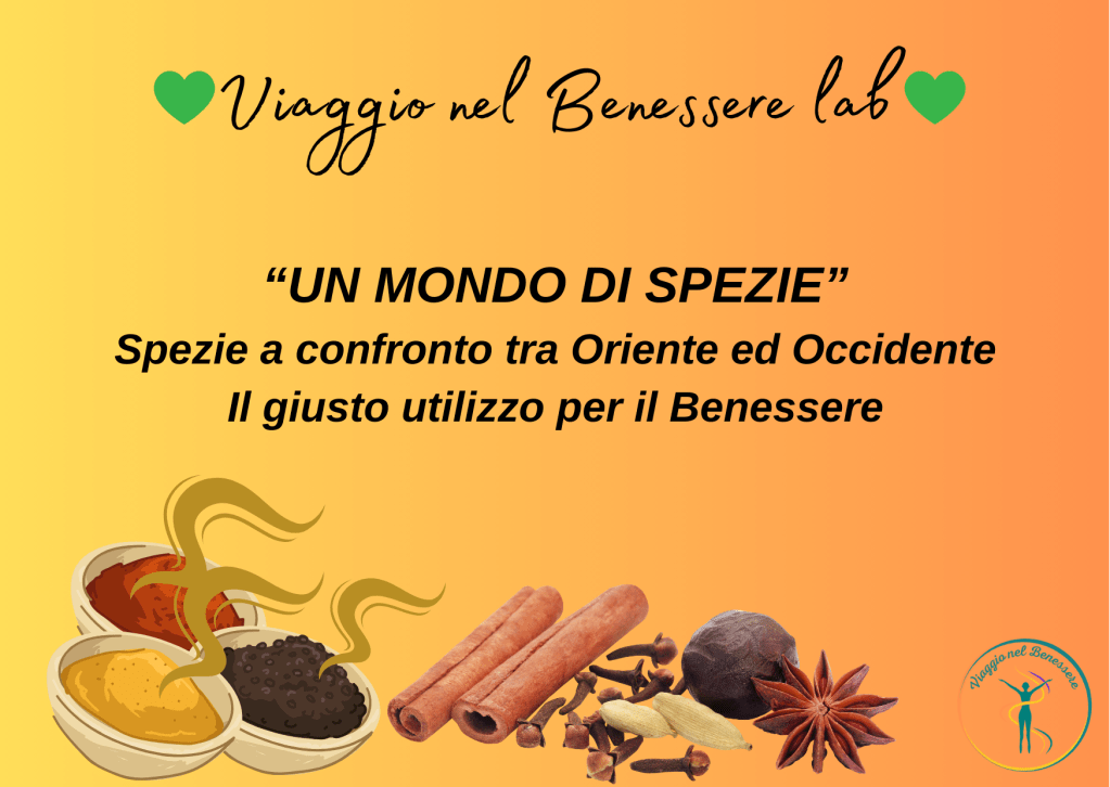 - Analizzeremo 6 spezie, 3 di origine orientale e 3 di origine occidentale, comprendendo le similitudini e le differenze le renderemo di facile utilizzo sia sul piano culinario sia sul piano benessere mente/corpo.